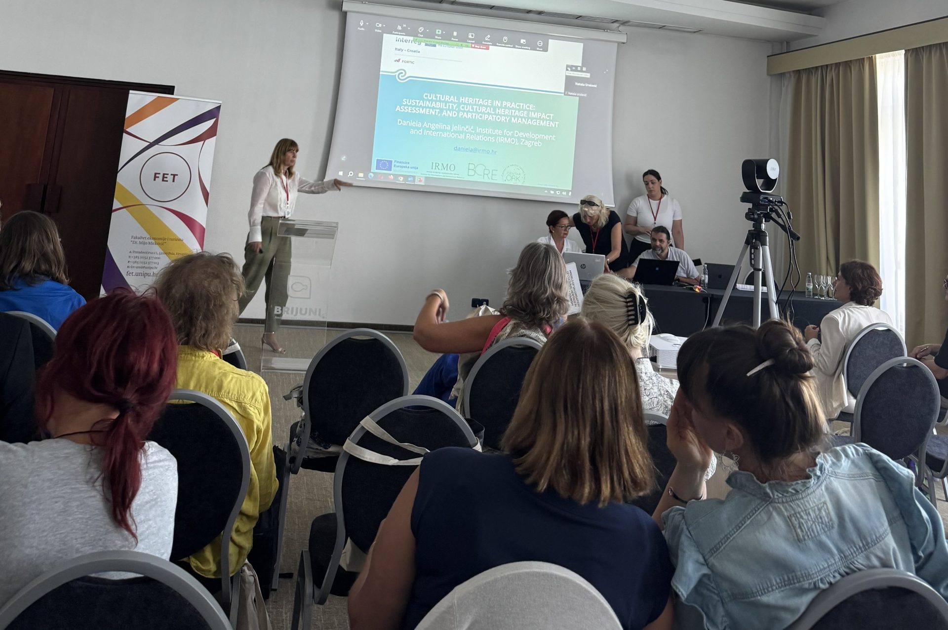 Daniela Angelina Jelinčić, PhD, Coordinator of the Center for Sustainable Development through Culture within the BORE project participated in the international conference “FORTIC: Fortified Architecture For The Culture Of Peace – European Best Practice In Fortified Heritage Management”, which took place in NP Brijuni on September 15 and 16, 2025. The conference was organized by the Faculty of Economics and Tourism “Dr. Mijo Mirković” of the Jurja Dobrila University in Pula within the framework of the FORTIC project. The goal of the conference was to encourage an interdisciplinary dialogue focused on the best European practices in the sustainable valorization and revitalization of fortifications and former military heritage and its transformation into areas of international cultural and scientific cooperation, civil and peace initiatives, solidarity and intercultural dialogue. Participatory sustainable management of fortified and former military heritage through transnational networking and cooperation can contribute to more balanced sustainable planning and the quality of life of local communities. As part of her presentation ‘Cultural heritage in practice: sustainability, assessment of impact on cultural heritage and participatory management’, dr. Jelinčić presented the results of research studies conducted at IRMO on the topics of sustainability of cultural heritage, participatory management of cultural heritage, and impact assessment of interventions in the field of cultural heritage. Her presentation served as an introduction to other presentations at the conference that focused on fortifications and military heritage, as an exemplary model for heritage sites management. The conference presented interesting research and good practice examples.